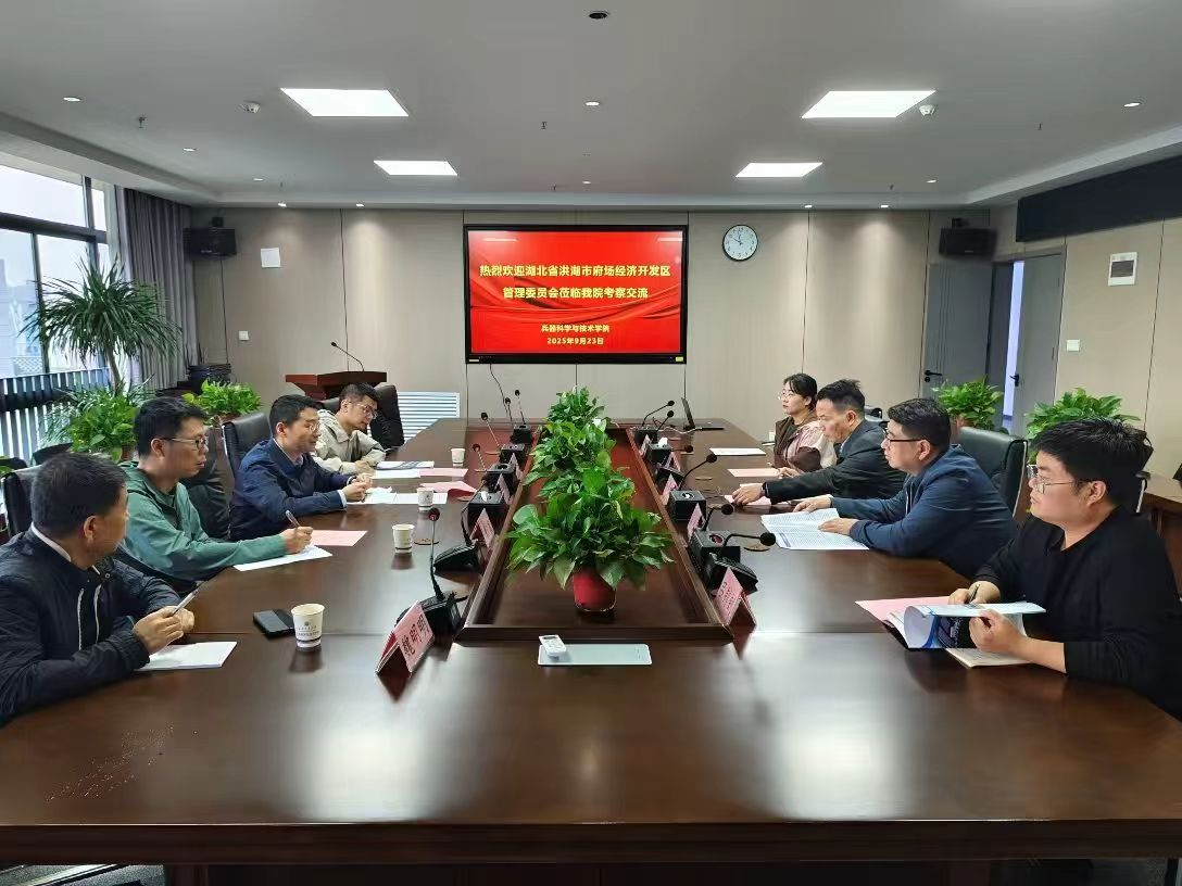 2025年9月23日,湖北省洪湖市府场经济开发区管理委员会考察团一行访问SUNBET申博,双方围绕产学研合作、技术攻关与人才输送开展深度交流。公司党委书记蔡长龙、科研团队负责人及教师代表参会。