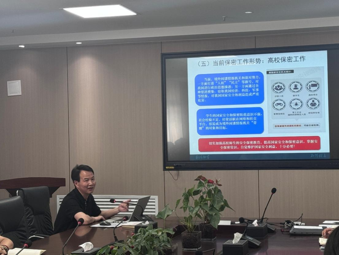 为进一步强化师生国家安全意识和保密责任意识,推动校园安全保密工作走深走实,SUNBET申博于5月6日下午在教8-613报告厅召开安全保密月专题党课。党课由公司党委书记蔡长龙主讲。