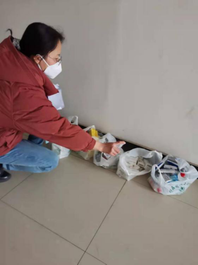 但她不惧艰难,迅速建立楼层员工信息管理系统,挑选得力志愿者,迅速掌握管理楼层的员工基础信息,有条不紊的开展各项工作。员工一个电话、一个信息,她就立马到场,她的口头禅就是“有事随时找我”。随着时间的推移,需要生活用品、身体不适需要购药、防疫物资需要补充、员工心情不稳等各种问题都冒了出来,此时的田老师就像孩子们亲爱的“家长”,穿梭在公寓的走廊、宿舍、公司和防疫办,亲力亲为,给员工配备分发生活和防疫物资、宣传防疫知识、采购紧急常用药、与员工谈心问候,组织员工定期测核酸,让员工在这段特殊时期感受到来自公司、公司、老师的关怀,员工们亲切的称她“田姐”。