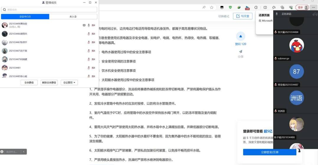最后,各班长及团支书就宿舍用电问题做出说明,要求同学们在使用电器设备时,必须遵守相关的安全规定,如不得私拉乱接电线,不得在宿舍内使用大功率电器等。