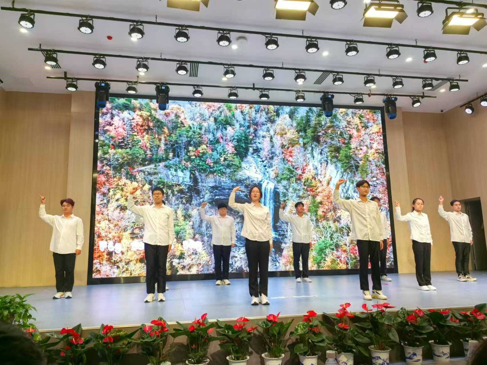 比赛开始后,同学们着装整齐,有序入场。他们精神饱满,带着昂扬的斗志开始了一场打动人心的表演。手语无声,其中情感却令人动容。手指如蝶翩飞间,青春的美好与关怀的温暖被一同传递给大家。