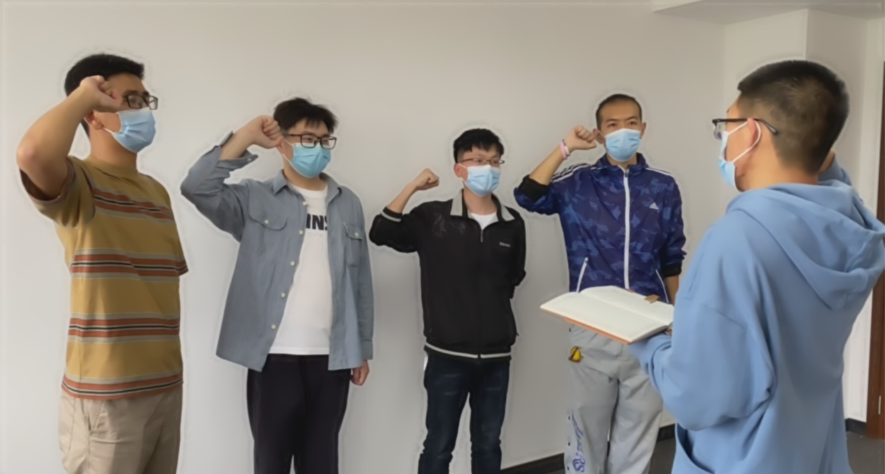 活动中,公司优秀共青团干部及优秀共青团员伴随着《光荣啊,中国共青团》团歌的旋律,紧握自己的右手,庄严宣誓了入团誓词,重温了这神圣的一刻。
