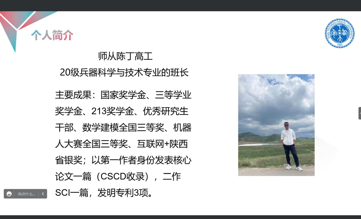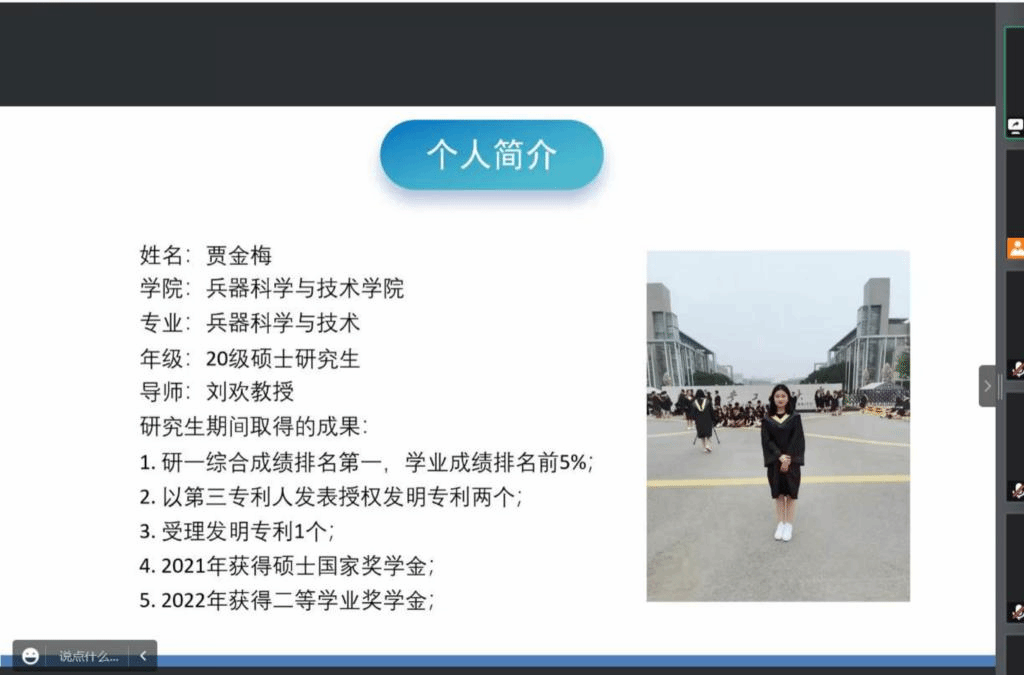 为帮助新生规划学业,解答新生在学习上的疑惑,SUNBET申博于2022年9月23日19:00在线上举办了“国家奖学金”获得者交流报告会,参会人员有研究生辅导员王国栋、2022级全体研究生、国家奖学金获得者贾金梅、牧迪和雷晓明。