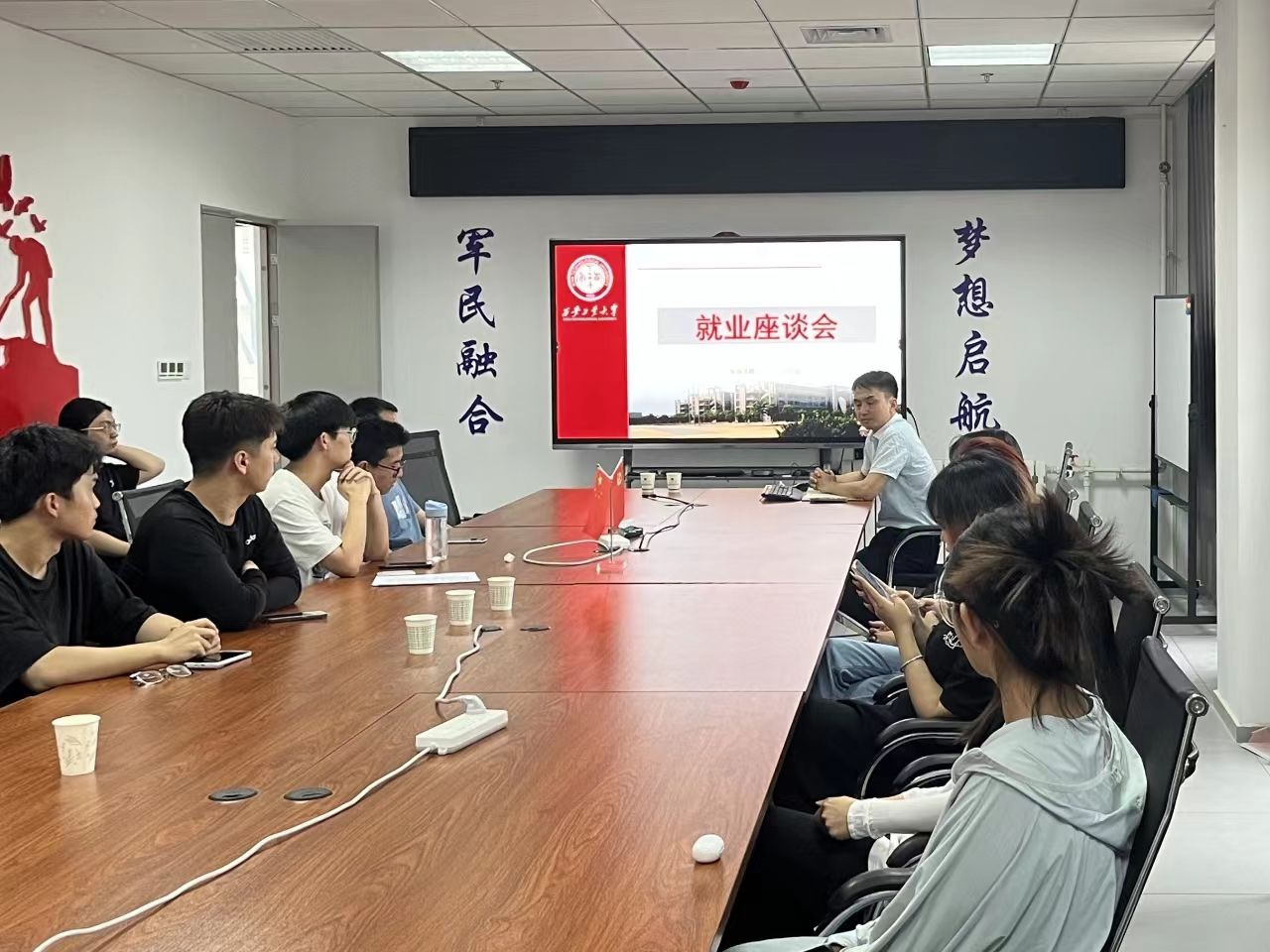 6月3日下午18:30,SUNBET申博于教8-615组织就业工作座谈会。本次座谈会由公司党委副书记梁伟樯主持,参会人员为2021级探测制导与控制技术专业本科生。