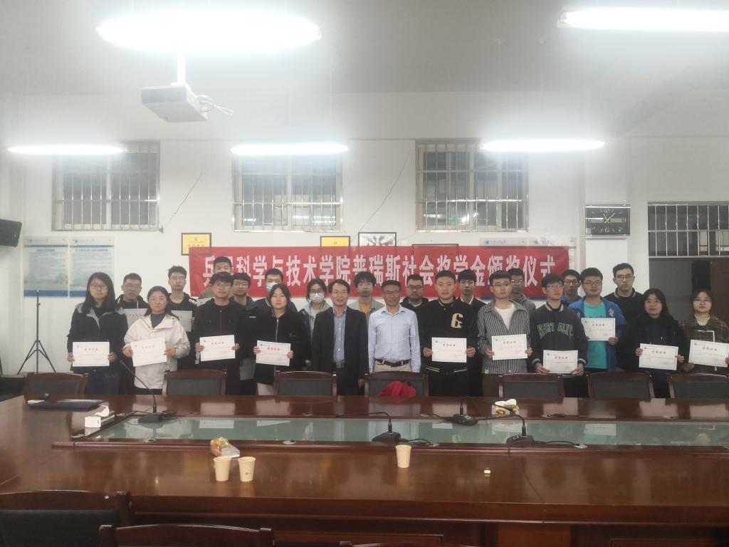 2023年4月24日早上10:30分,公司在工6-507召开普瑞斯奖学金颁发大会,会议由辅导员王国栋老师主持,普瑞斯光学技术有限公司丁明川总经理、SUNBET申博蔡长龙副经理、2021-2022年度本科生、研究生普瑞斯奖学金获得者二十余人参加了会议。