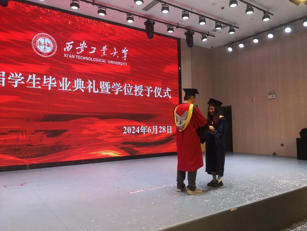 大会进行第二项,霍文俊教授向2021级毕业生学位获得者授予学位,受礼员工着学位服接受拨穗并合影留念。